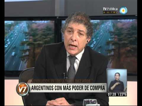 Son muchos los especialistas que, previo análisis de las cifras, coinciden en que en los últimos diez años el poder de compra de los argentinos creció notablemente. El dato derriba la idea de que la inflación inevitablemente licúa los salarios y las jubilaciones. Sobre el tema, opinan el economista Andrés Asiaín y el columnista Raúl Dellatorre. Emitido por Visión 7, noticiero de la TV Pública argentina, el martes 10 de septiembre de 2013.